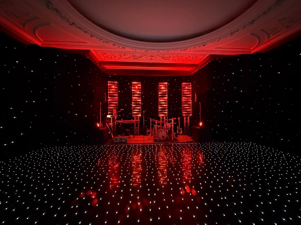 This features four custom towers fitted with LED pixel tape, creating a dynamic and visually striking backdrop with flowing colour effects, sweeps, and pulses that respond to the energy of the performance.