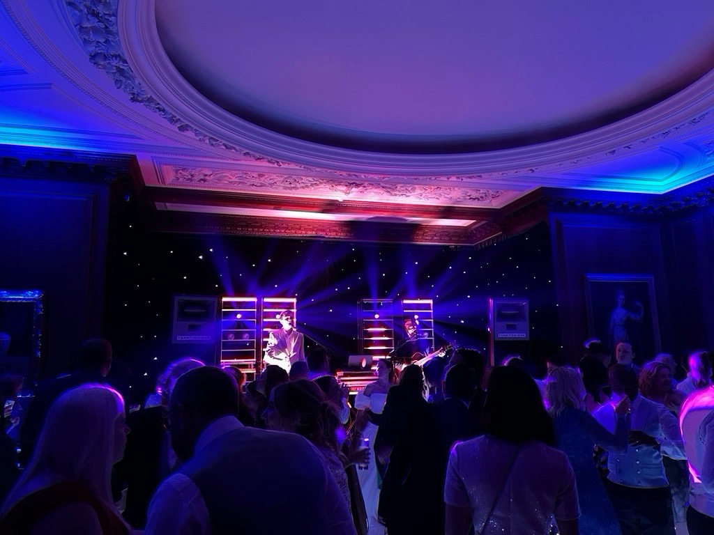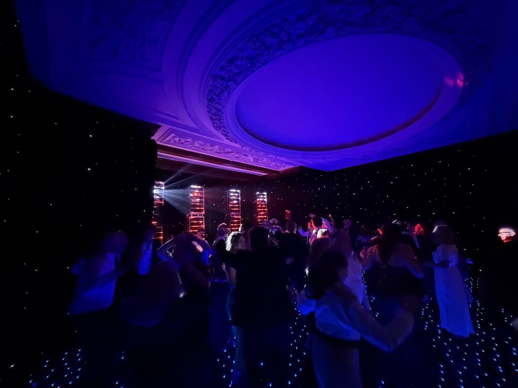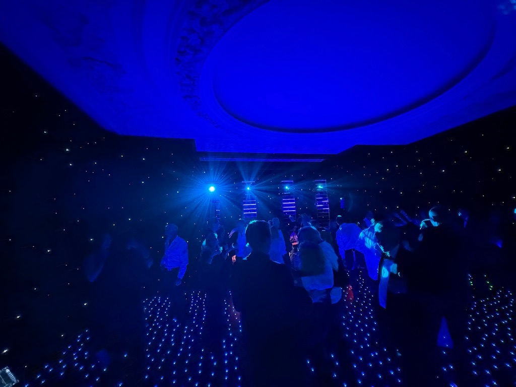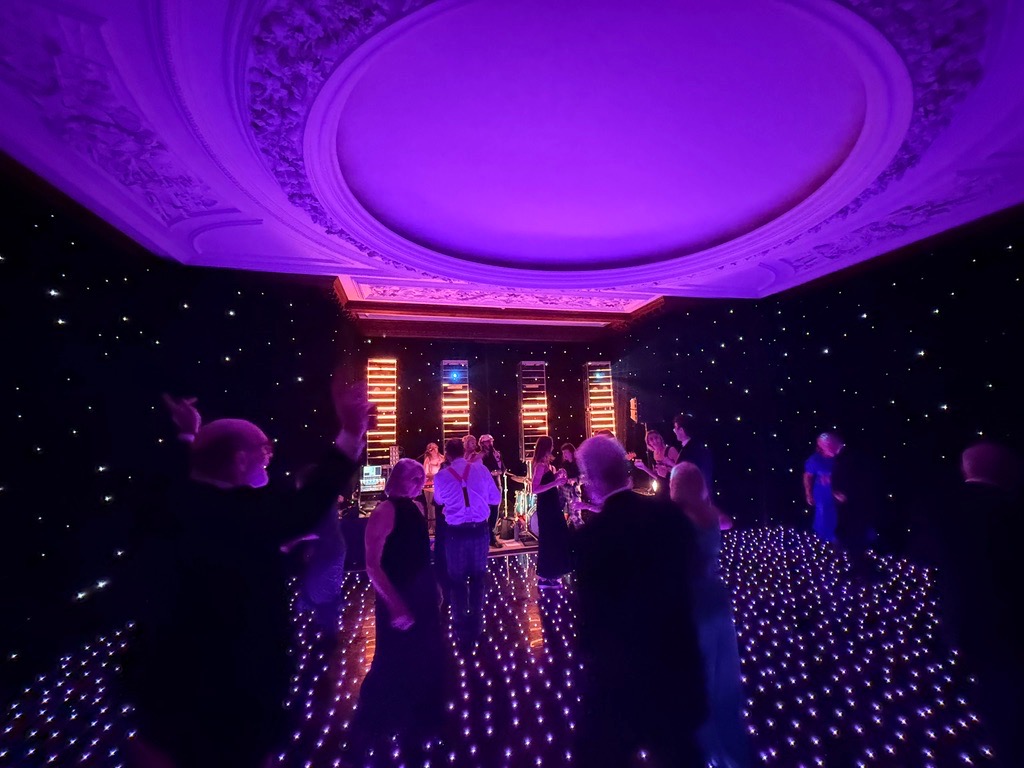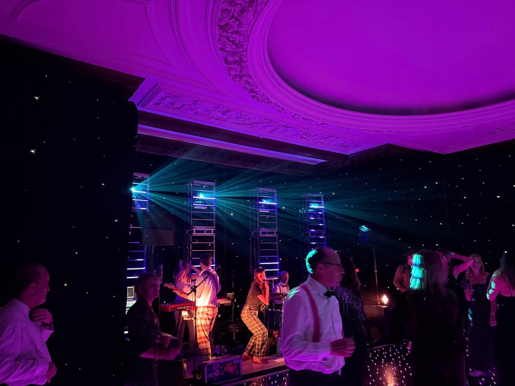 Alternatively, when included as part of our DJ or band lighting package, the uplighting becomes fully integrated into the overall lighting system controlled in real time by our lighting operator to create a fully immersive, dynamic atmosphere.