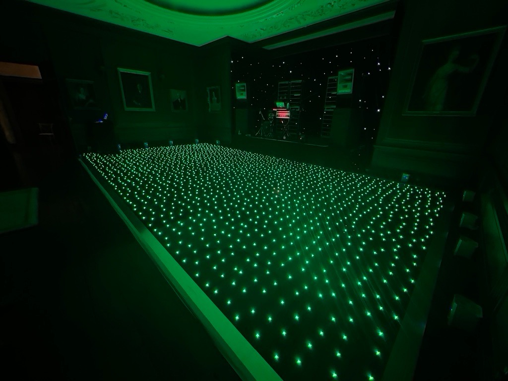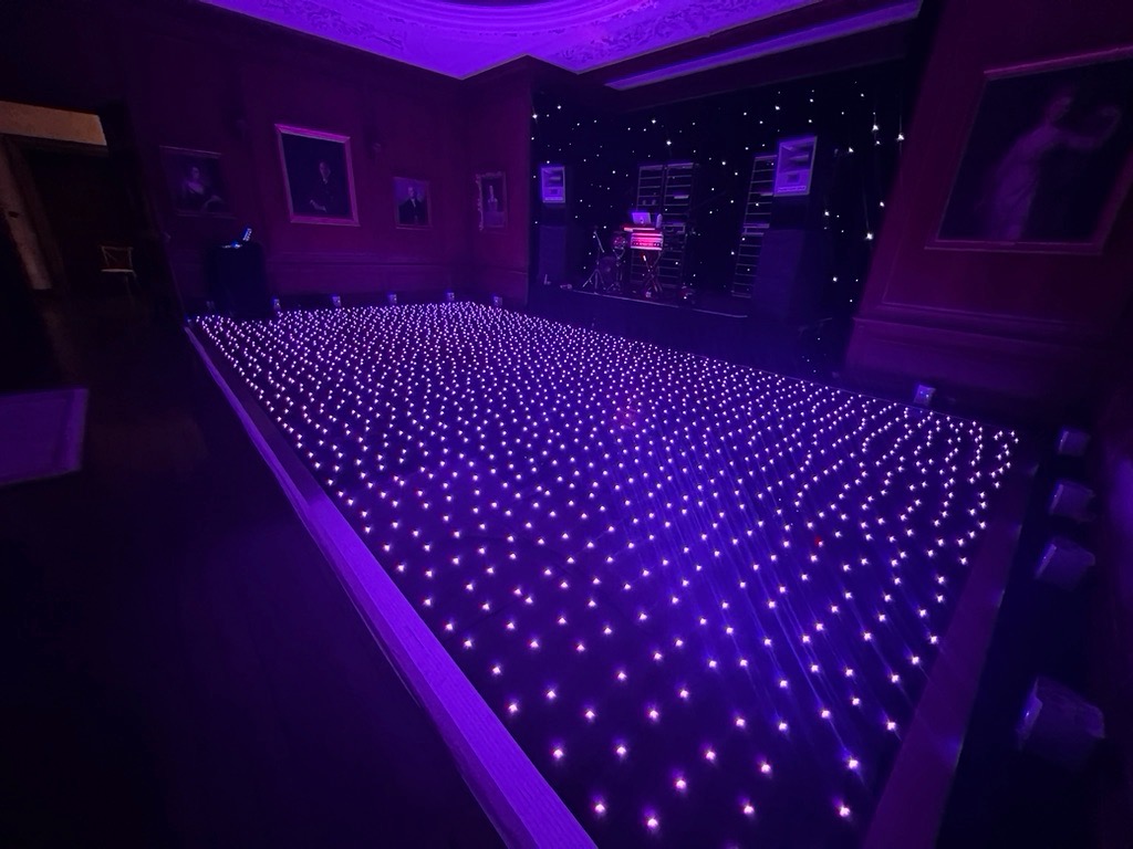 Our black gloss RGB LED starlit dance floor offers a truly premium finish, available at the same price point as a standard plain floor.